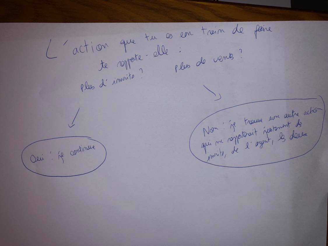 Me perdre dans des idées de formation et imaginer tout ce que je pourrais créer ? Nul - car je reste dans la théorie au lieu de passer à l'action et de créer. Il serait bien plus intelligent de ma part de prendre une idée de cours que j'ai eue … De faire le plan immédiatement … Puis de réserver un bureau dans la semaine, pour être sûr de la shooter (et donc de la lancer).