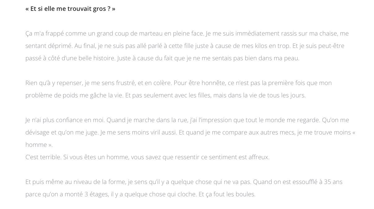 Histoire avec détails où ton lecteur visualise la scène (et où il peut s'identifier à ce que tu racontes)
